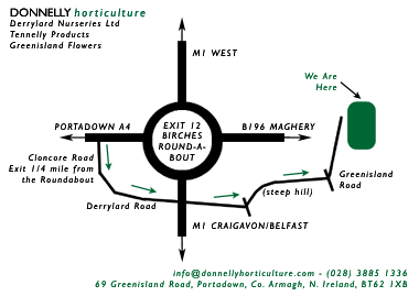 Home : Derrylard Nurseries :Tennelly Products : Greenisland Flowers : Latest News : Jobs : Links : Contact Us
